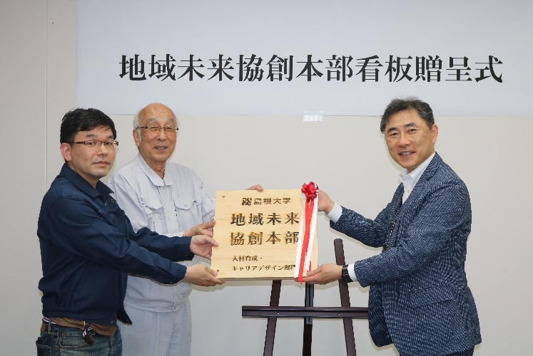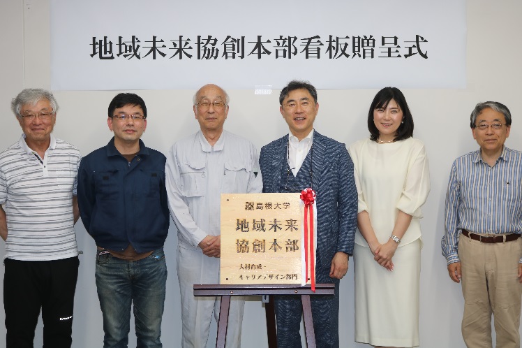 5月18日(木)に地域未来協創本部の交流室にて、人材育成・キャリアデザイン部門の看板の贈呈式が行われました。