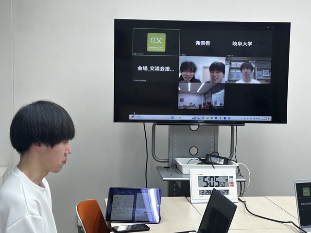 | 島根大学のオンライン発表の様子 | 主催会場 集合写真(提供:岐阜大学) |