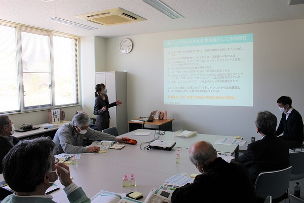 島根大学 地域未来協創本部および島根県 産業振興課は、2023年3月28日(火)に、島根大学 生物資源科学部 生命科学科の児玉 有紀 教授を情報提供者として、「クロレラと共生する繊毛虫ミドリゾウリムシの有用性について」をテーマに、少人数・対話型の研究紹介『技術コミュニティラボ』第17回ミーティングを、松江市北陵町の地域未来協創本部会議室において開催しました。